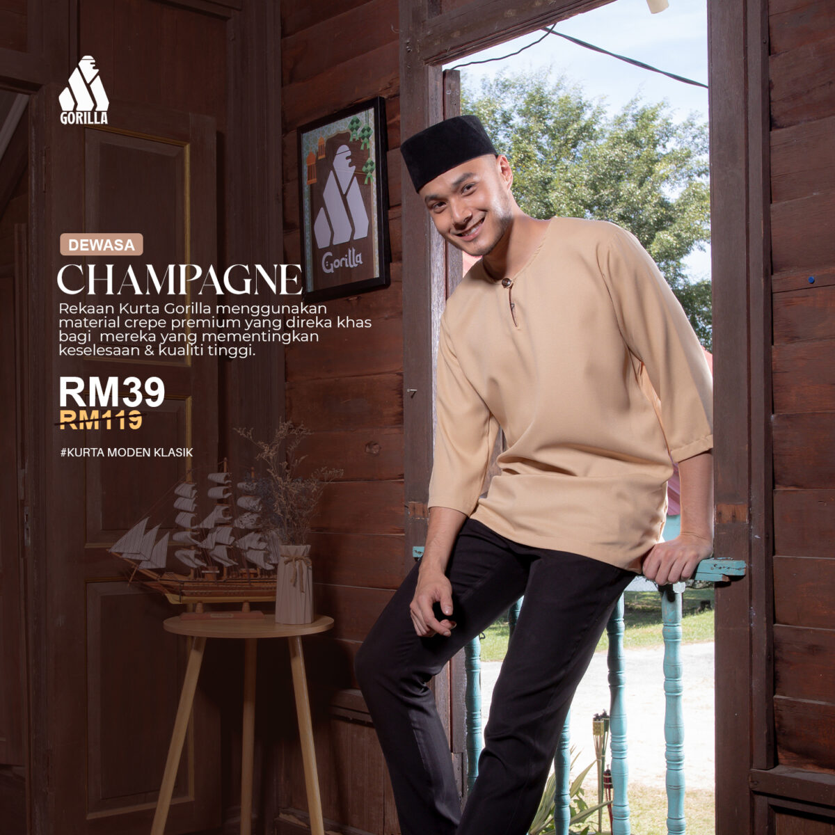 Kurta Gorilla menggabungkan gaya tradisional, elegan dan minimalis. Sesuai untuk pelbagai majlis, dari formal hingga santai.